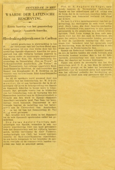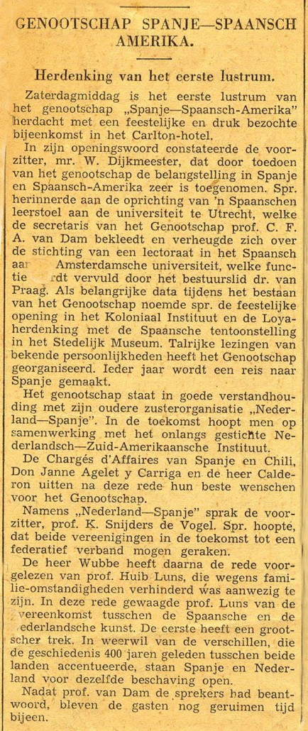 Oprichtingsvergadering van het Genootschap “Spanje – Spaansch Amerika” in oktober 1927 in het Koloniaal Instituut te Amsterdam.